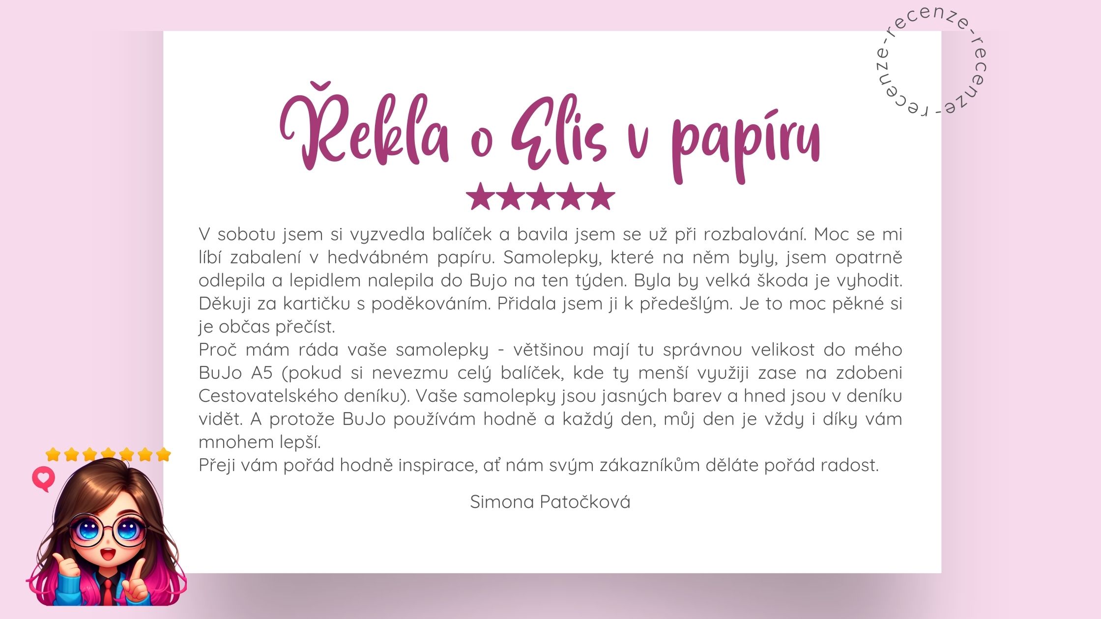 Ručně psané jméno, hedvábný papír a vzkaz jen pro tebe. A nad 1000 Kč ho posílám s vybranou dopravou zdarma.