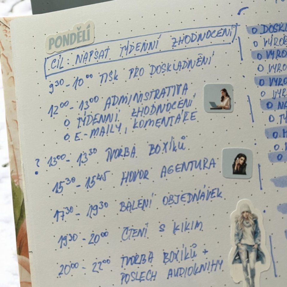 Tip: Vyber si dobu, která ti nejvíc vyhovuje, a udělej z plánování pravidelný rituál – třeba s šálkem čaje nebo kávy.