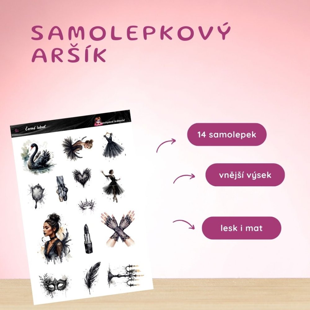 Na tomhle aršíku se potkává baletní krása s temnou elegancí. Vznášející se baletky, šustící tylové sukně, třpytivé korunky a masky ve stínech černé a šedé vytvářejí atmosféru večerního představení. Každá samolepka působí jako malý obraz plný emocí – od křehkosti až po dramatickou sílu. Tenhle aršík samolepek do diáře vnese do tvého plánování jedinečný příběh, který si budeš chtít vyprávět znovu a znovu.
