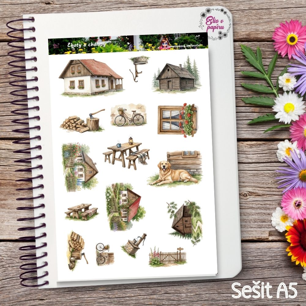 Tenhle aršík ve mně probouzí přesně ten pocit, kdy přijedeš na chalupu, otevřeš okno a dovnitř pustíš čerstvý vzduch a klid. Miluju jeho obyčejnou krásu, protože právě v ní je to největší kouzlo. Když se na něj dívám, vidím dřevěné lavičky, stará okna, zahradu a pomalé odpoledne bez spěchu. Je v něm teplo domova, jemná nostalgie i radost z maličkostí. Nejradši ho používám ve chvíli, kdy chci stránkám dodat útulnost a příběh. Každá samolepka působí jako malý návrat na místo, kde je člověku dobře. Zkus si s nimi vytvořit svůj vlastní kousek venkovské pohody 🤍