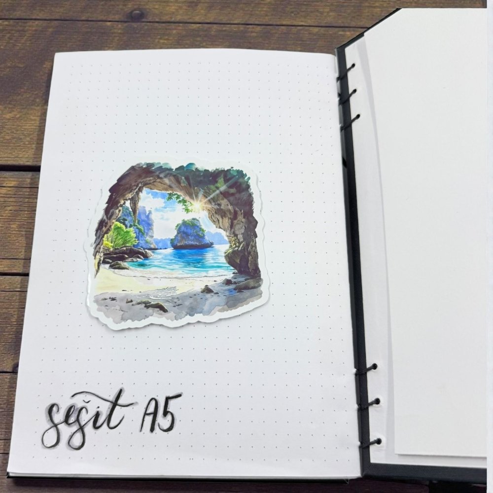 Kdykoli se podívám na tuhle samolepku, cítím slunce na kůži ☀️. Je to pro mě taková minibrána do jiného dne – když se plánování začne měnit v chaos, tahle jeskyně mě vrátí zpátky k sobě. Nalepila jsem si ji třeba i na obálku cestovního deníku – protože vystihuje ten pocit těšení a volnosti. Někdy ji prostě jen vezmu a nalepím do středu týdne. A najednou je tam prostor. Zkus si s ní udělat malý papírový únik.