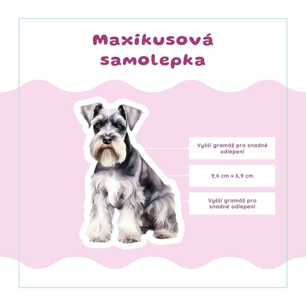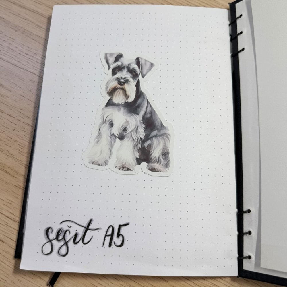 Motiv zachycuje knírače v jemném akvarelovém stylu s důrazem na jeho typickou srst a výraz. Kombinace šedých, černých a krémových tónů působí nadčasově a elegantně. Celý obrázek je čistý, klidný a velmi harmonický. Styl je jemný, ale přitom detailní a výrazný. Tyto samolepky do diáře dodají tvému plánování osobitost i styl.