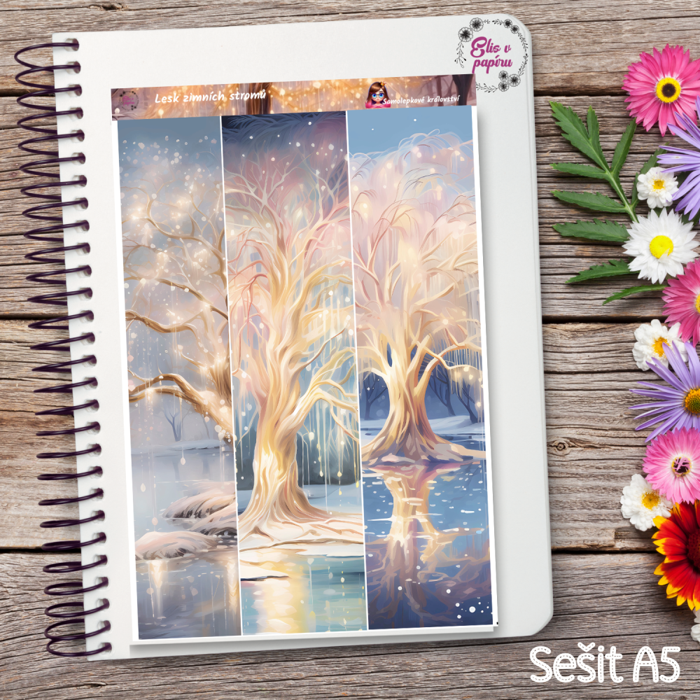 Jakmile začne venku mrznout a větve se obalí jinovatkou, mám chuť zachytit ten lesklý klid i v diáři. Tyhle samolepky jsem vybírala s myšlenkou na zimní snění – měkké světlo, ticho, křupající sníh. ✨ Nejčastěji je lepím na konec týdne, když si potřebuji vydechnout nebo bilancuju. Stačí jeden strom a stránka se promění v malou zimní krajinu. Někdy si k tomu i zapálím svíčku a udělám si z plánování rituál. Přidej si je tam, kde chceš trochu kouzla a míru.