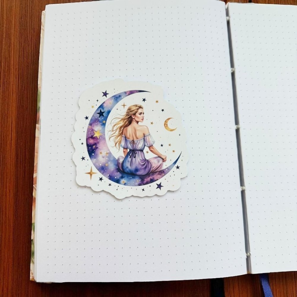 Miluju, jak tahle samolepka působí jemně a silně zároveň. 🌙 Bohyně, která sedí na půlměsíci, mi připomíná, že i v obyčejném dni je místo pro kouzlo a sny. Sama ji lepím na stránky, kde si píšu přání, záměry nebo bilancuju pod novoluním. ✨ Pokaždé, když ji vidím, cítím se víc propojená se svým vlastním rytmem. Možná ti vnese do plánování podobnou dávku magie – a možná ti připomene, že i ty jsi bohyně svého života.
