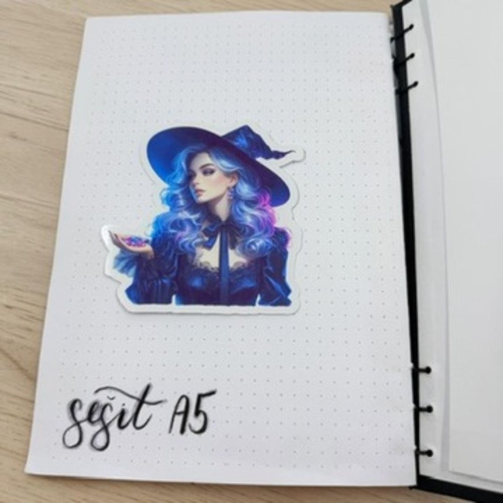 Na téhle čarodějce mě fascinuje ta tichá síla a jemná magie, která z ní vyzařuje. Není okázalá, ale přesto nepřehlédnutelná – jako malé kouzlo ukryté v běžném dni. Když si ji nalepím do diáře, připomene mi, že i já si můžu tvořit svůj vlastní svět. Miluju ty barvy ve vlasech, které působí skoro jako světlo ve tmě. Je to takový detail, který ti dodá odvahu být víc sama sebou. A zároveň vnese do plánování trochu snění a lehkosti. Jestli máš ráda magii a fantazii, tenhle motiv si zamiluješ ✨