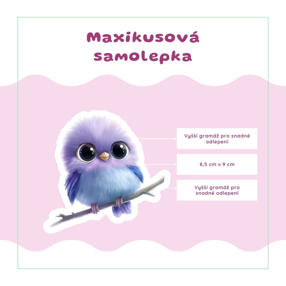 Jemné odstíny fialové a modré vytvářejí hebký, skoro snový dojem. Malý ptáček s velkýma očima působí roztomile a přátelsky, jako by ti dělal společnost při každém plánování. Celý motiv je lehký, vzdušný a plný pozitivní energie. Kombinace pastelových barev přináší klid i hravost zároveň. Tyto papírové samolepky si jednoduše zamiluješ na první pohled.