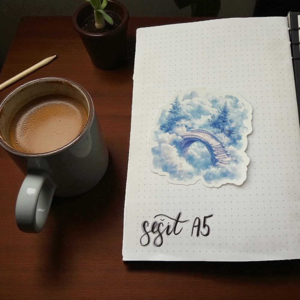 Občas hledám v diáři místo, kde můžu jen tak snít. A právě tam patří tahle samolepka ☁️. Most mezi mraky – něžný, klidný, trochu tajemný. Miluju, jak je zamlžený, jak mizí v obláčcích – jako kdyby říkal „pojď, uvidíš, co bude dál“. Vždycky mě přivede zpátky k sobě. Zkus ho taky – možná ti přinese víc, než čekáš.