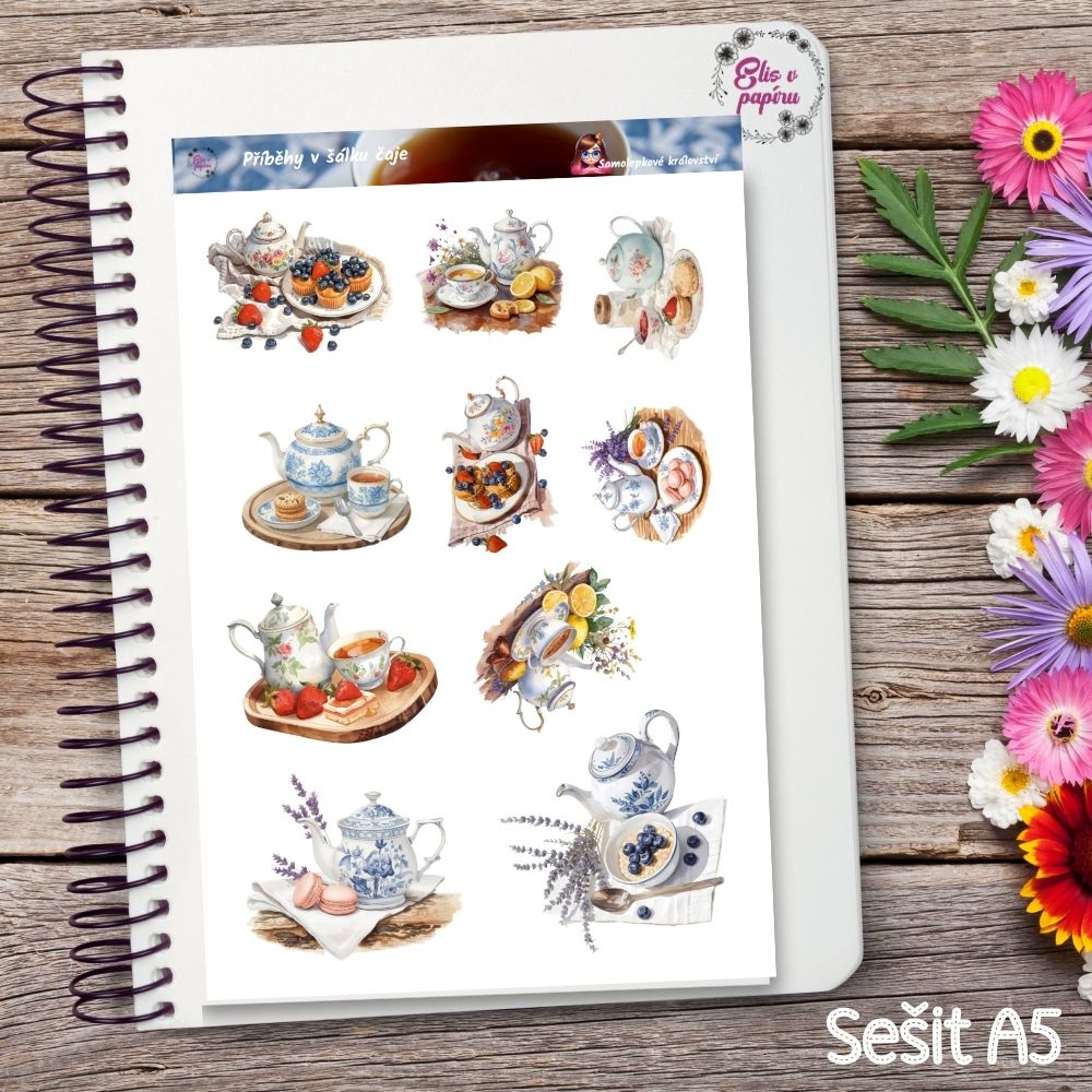 Najdeš tu čajové konvičky, šálky, dezerty, ovoce i jemné dekorace. Tyto samolepky do diáře krásně doplní diářové samolepky i samolepky na bujo a hodí se i jako papírové samolepky na scrapbook.
