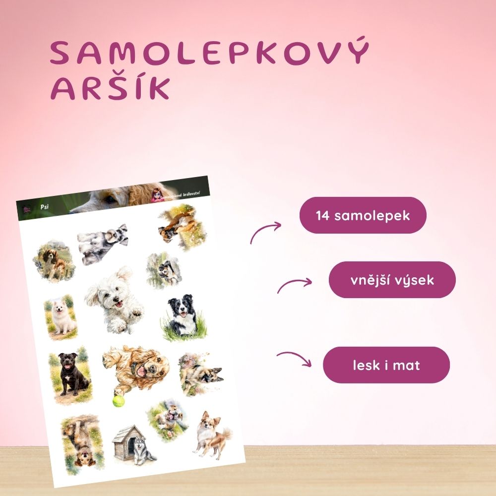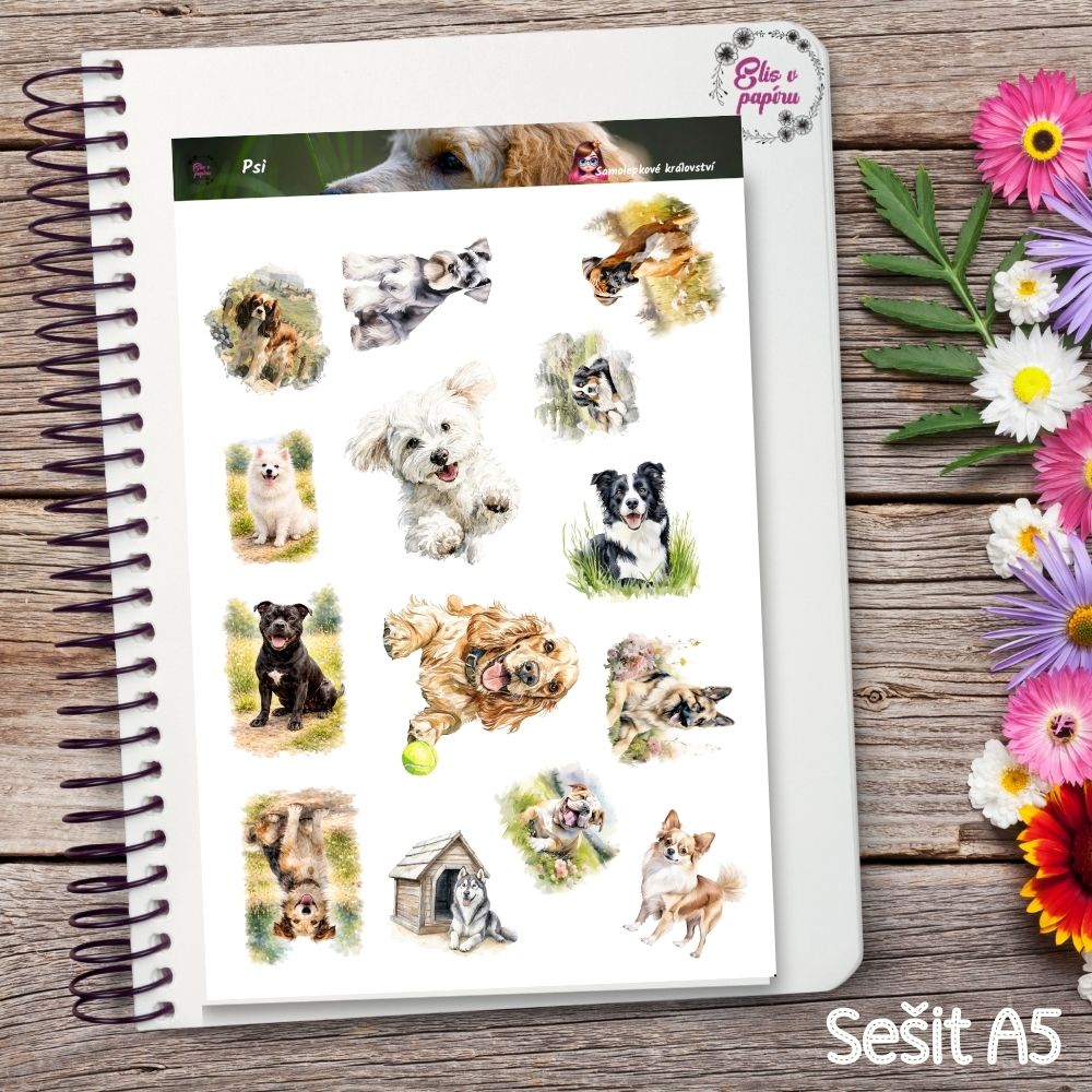 Tenhle aršík je pro mě čistá radost a upřímnost, kterou umí dát jen psi. Když se na něj dívám, vidím bezstarostné chvíle venku, vrtící ocásky a oči plné lásky. Každý pejsek má jinou náladu – někdo si chce hrát, jiný jen odpočívat v trávě. Přesně tyhle malé momenty mi připomínají, jak důležité je zpomalit a užít si přítomnost. Často si tyhle samolepky do diáře lepím do dnů, kdy chci víc lehkosti a úsměvu. A víš co? Vždycky to funguje. Pokud miluješ psy stejně jako já, tohle je přesně pro tebe. 🐾