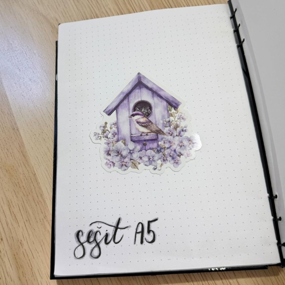 Motiv zachycuje dřevěnou ptačí budku v krásných fialových tónech, doplněnou drobným ptáčkem a bohatými květy kolem. Barevná paleta je laděná do jemných odstínů fialové, levandulové a krémové, které působí velmi něžně a romanticky. Celý motiv má vintage nádech a evokuje klidné chvíle v přírodě. Květiny dodávají kompozici lehkost a eleganci. Tyhle samolepky do diáře přinášejí harmonii a tichou radost.