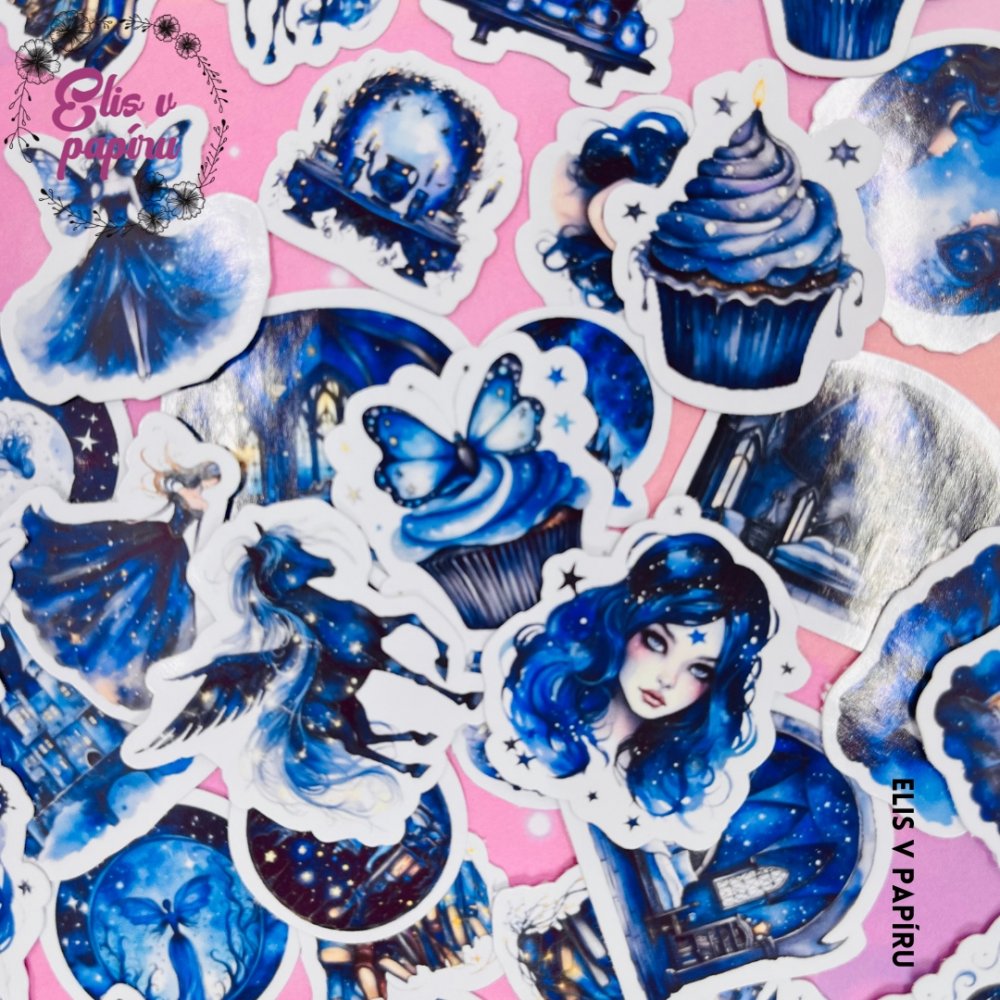 Temně modré tóny, třpyt noční oblohy a éterická krása vílího světa. Tahle sada malých samolepek je jako šepot pod hvězdami – tichý, ale silný. Najdeš tu tajemné ženské tváře, snové šaty, křídla, motýly i drobné mystické symboly. Kombinace pohádkového stylu a hluboké barevnosti vytváří pocit, že každý nalepený kousek něco vypráví. Stačí otevřít diář a necháš se vést intuicí.