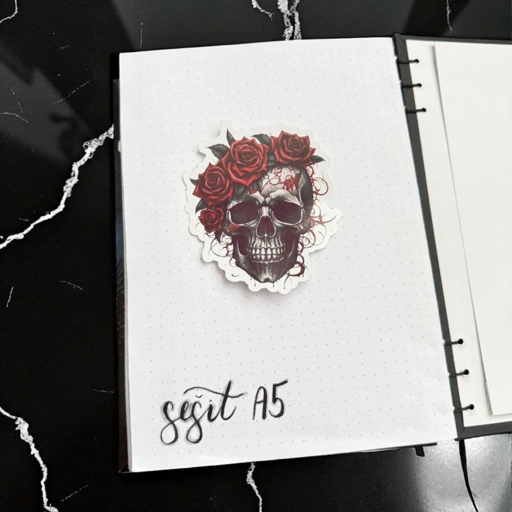 Růže a lebka – dvě silné ikony spojené v jednom výrazu. Tahle samolepka je poctou temné kráse, vnitřní síle a emocím, které nejdou vždycky vidět navenek. Rudé růže kvetou z popraskané lebky, která jako by nesla vzpomínky, co neumí odejít. Je to výtvarně výrazný, ale zároveň hluboce symbolický motiv, ideální do stránek, které mají co říct.