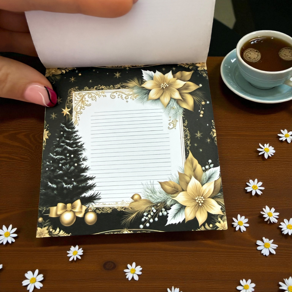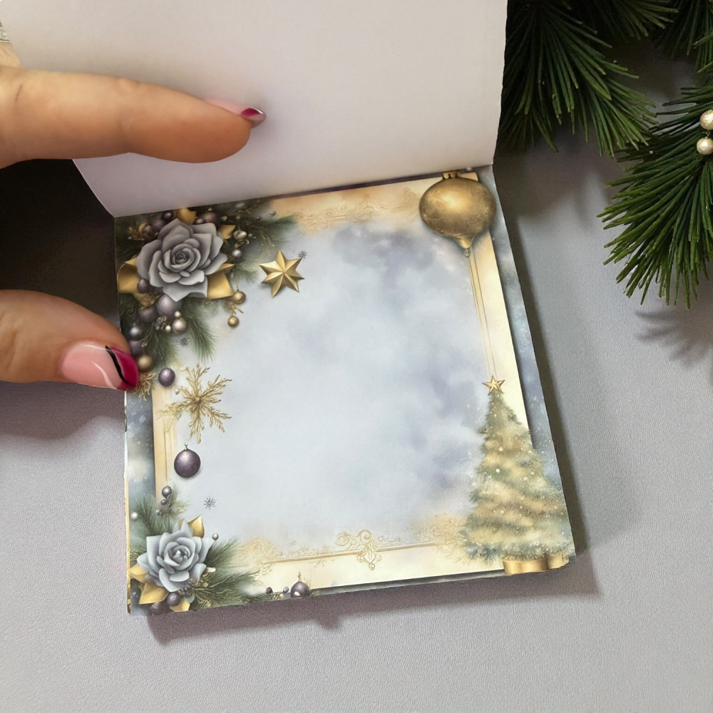 Tenhle bloček je jako vizuální adventní kalendář – každý list jiný, každý přináší jinou slavnostní náladu. Kombinuje jemné fialové tóny, temnou eleganci i zlatavý lesk. Ilustrace jsou propracované, romantické a harmonické – ideální pro všechny, kdo milují psaní a papírové kouzlo Vánoc. Ať už píšeš seznam přání, poznámky nebo malý vzkaz, s tímhle bločkem to bude vypadat krásně.