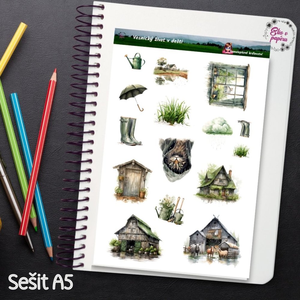 ✨ Samolepky do diáře s deštivou atmosférou venkova